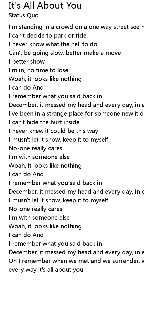 December, it messed my head and every day, in every way it's all about you |