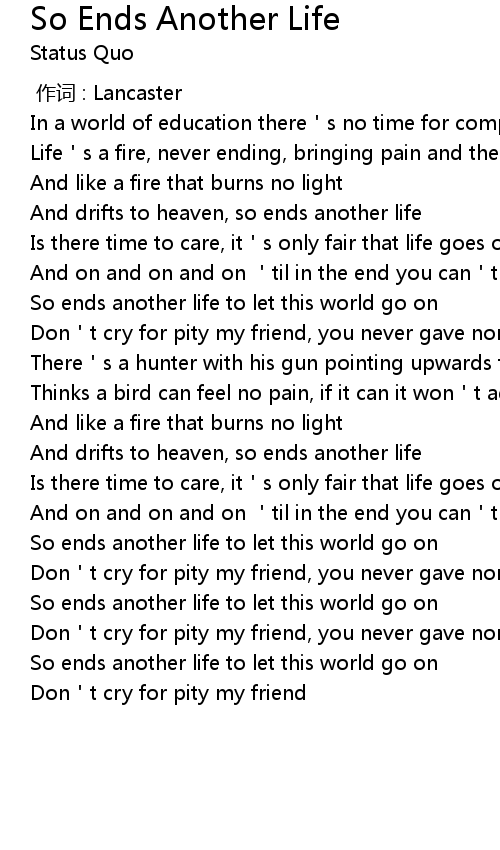 | [01:55.73] | And drifts to heaven, so ends another life |