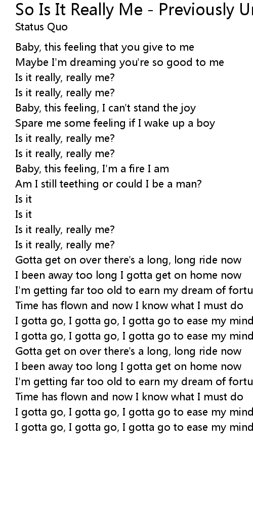 I gotta go, I gotta go, I gotta go to ease my mind |