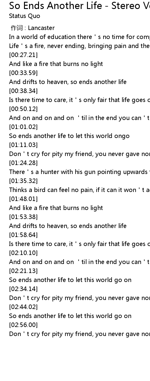 | [02:23.88] | So ends another life to let this world go on |