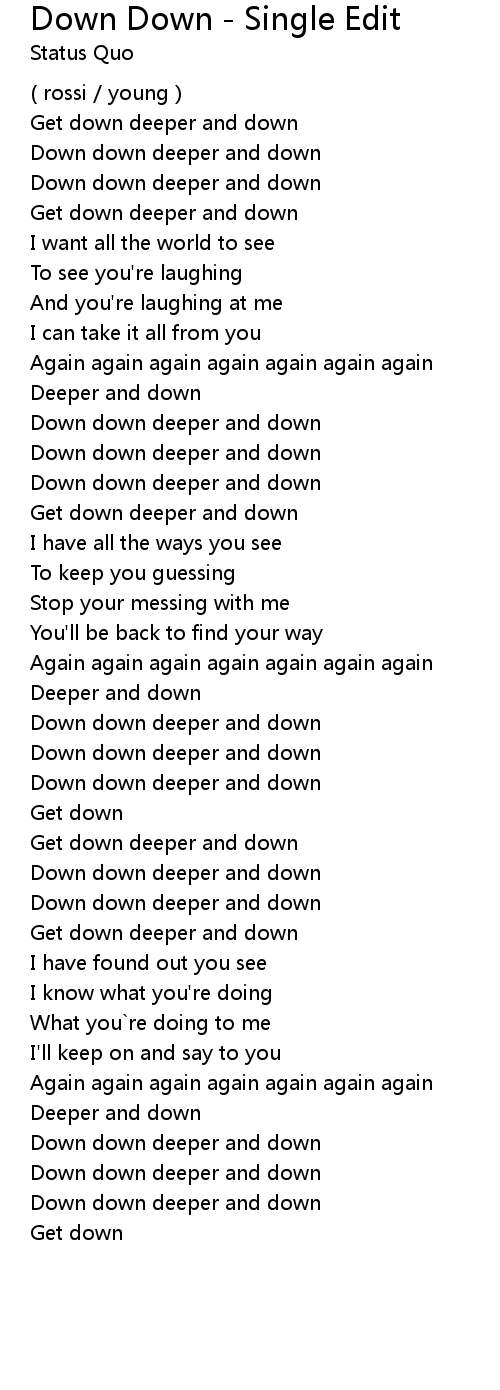 Down Down - Single Edit Lyrics