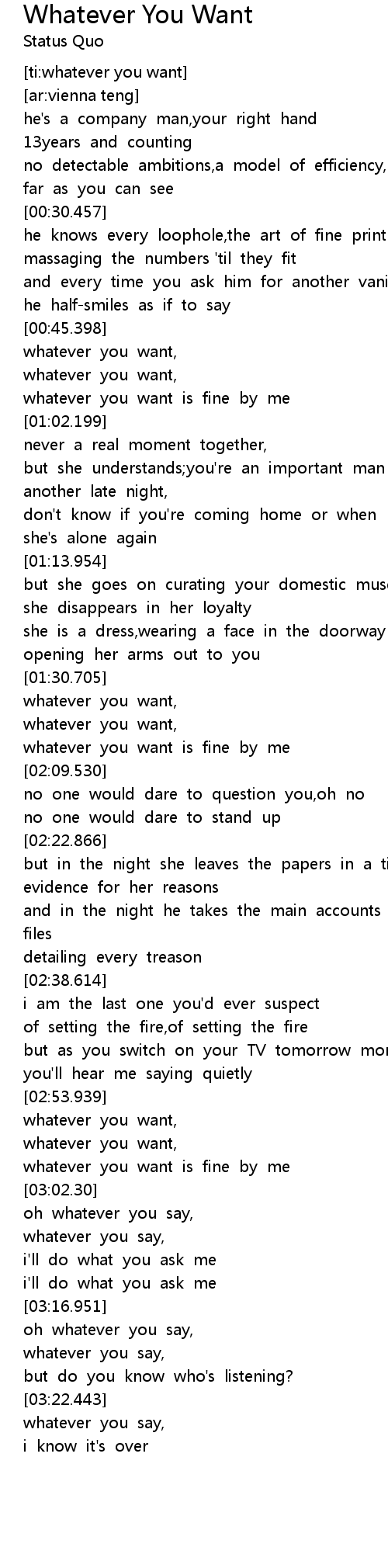 Whatever You Want Lyrics