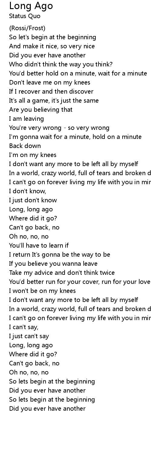 So lets begin at the beginning |