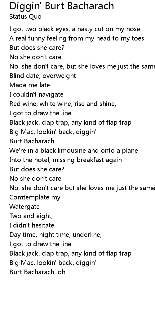 No, she don't care, but she loves me just the same |