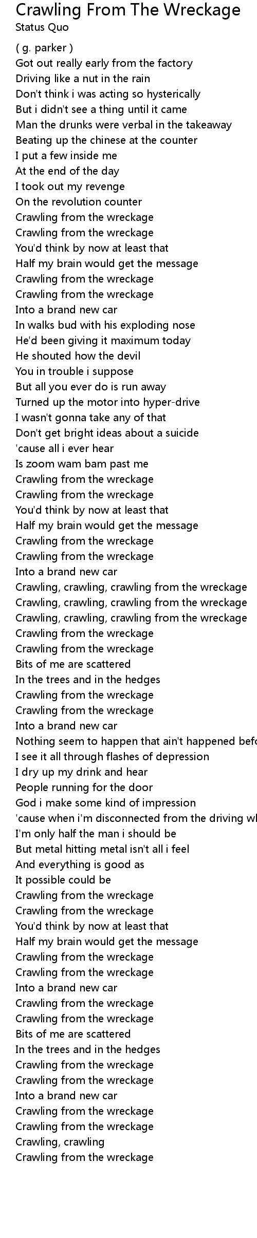 Crawling, crawling, crawling from the wreckage |