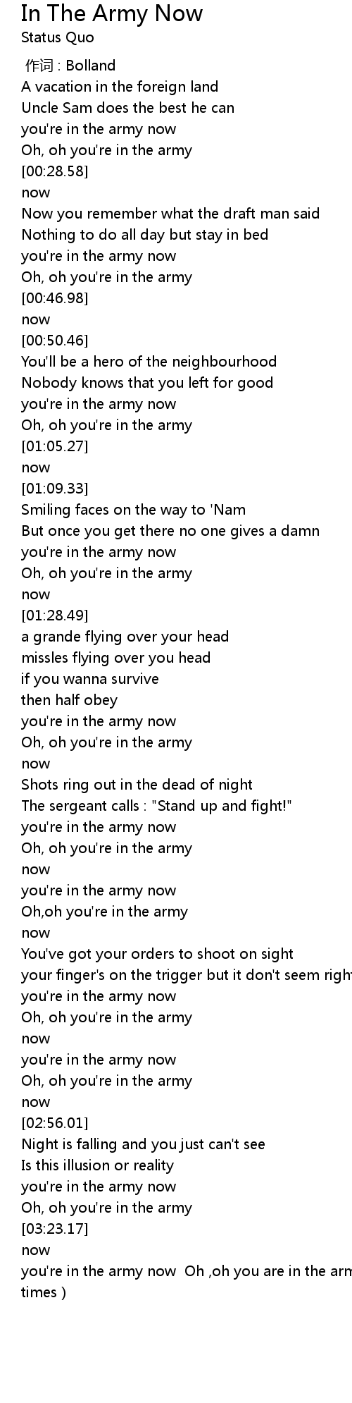 | [03:24.32] | you're in the army now Oh ,oh you are in the army now (for 3 times) |