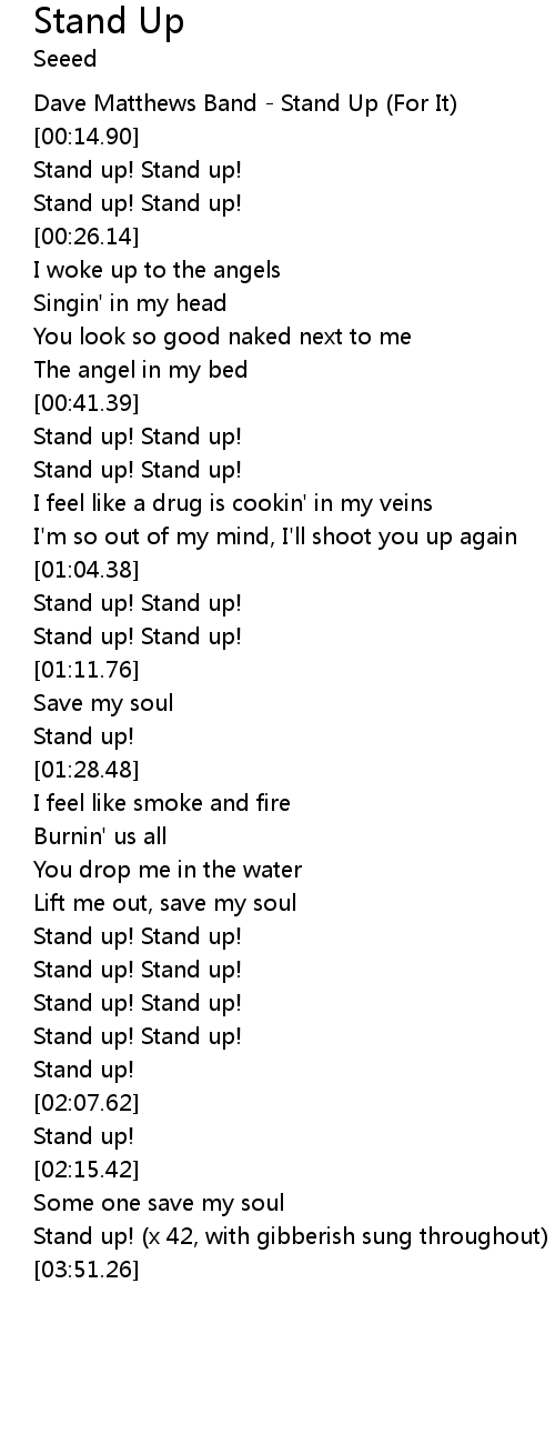 | [02:51.66] | Stand up! (x 42, with gibberish sung throughout) |