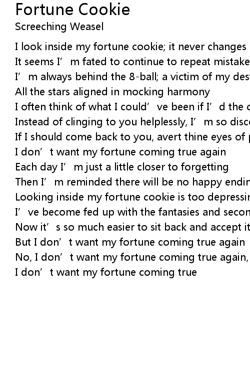 | I look inside my fortune cookie; it never changes | |