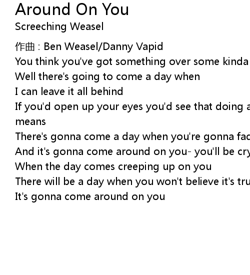 | And it' s gonna come around on you you' ll be crying slowly dieing | |