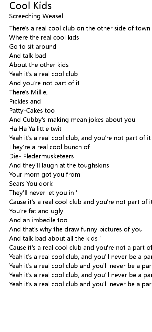 Cause it's a real cool club and you're not a part of it |