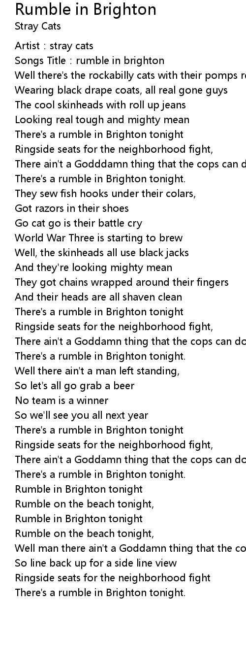 | [00:49.98] | There's a rumble in Brighton tonight |