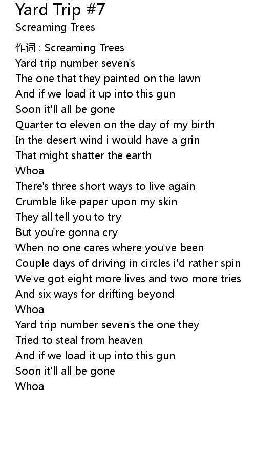 | Yard trip number seven's the one they | |