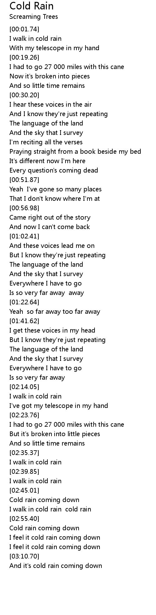 I walk in cold rain cold rain |