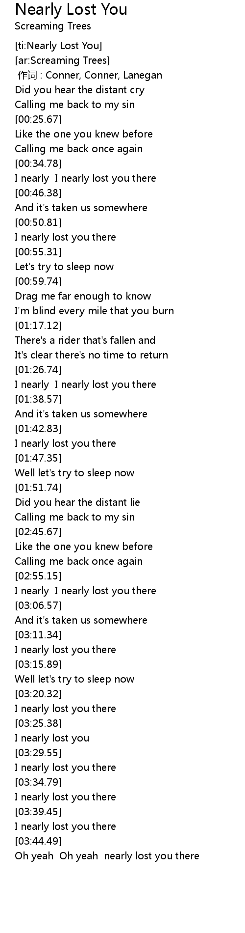 | [00:00.00] | 作词 : Conner, Conner, Lanegan |