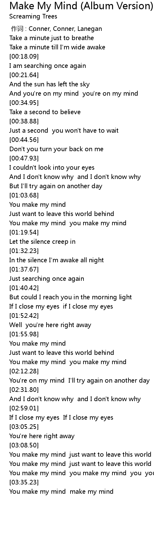 | [03:10.05] | You make my mind just want to leave this world behind |