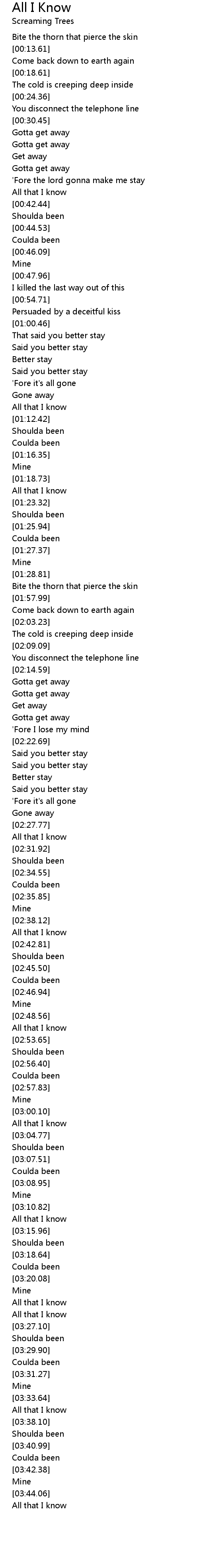 All that I know |