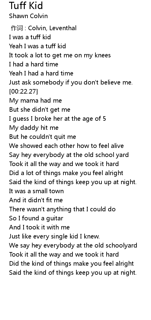| [00:01.46] | I was a tuff kid |