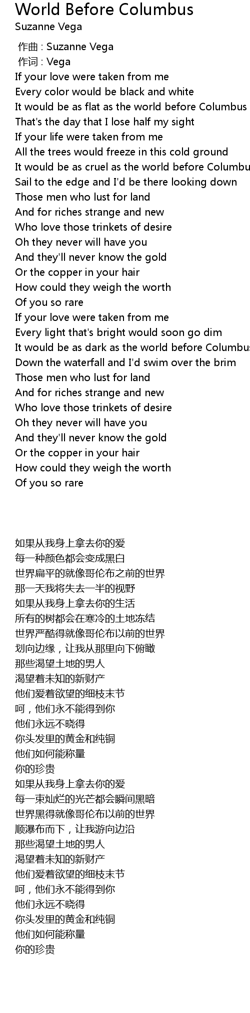 | [00:00.00] | 作曲 : Suzanne Vega |