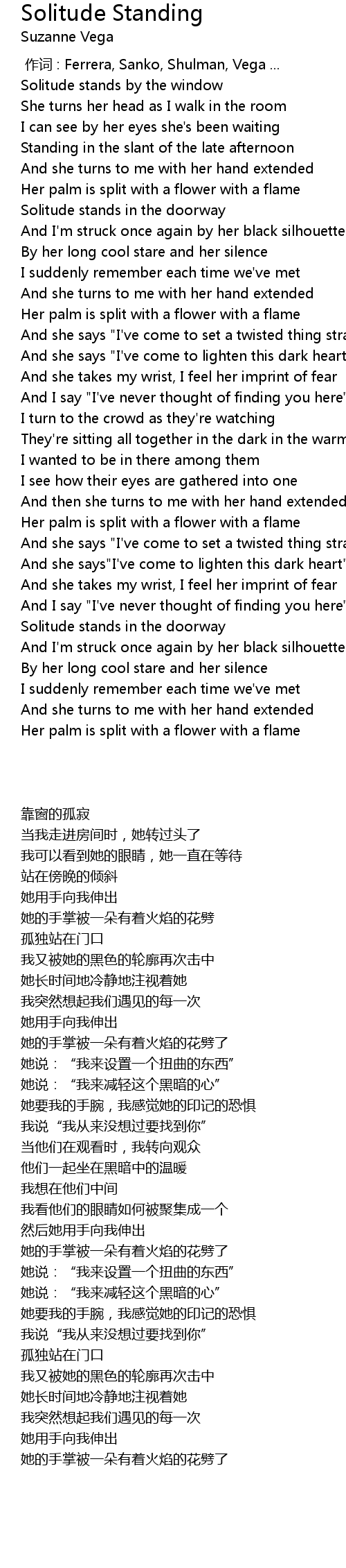 | [03:20.22] | Solitude stands in the doorway |