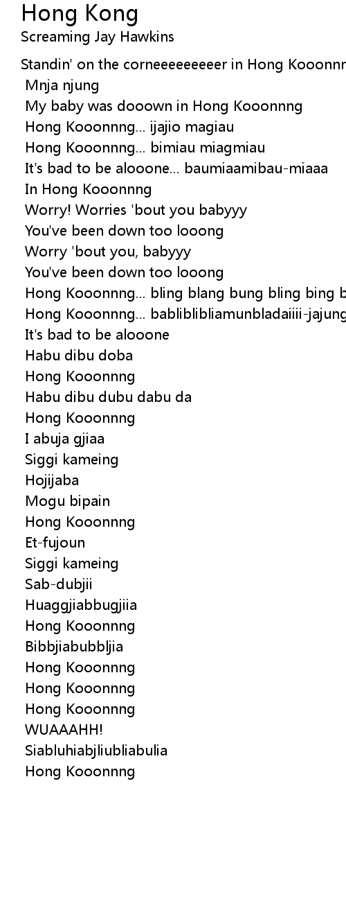 Standin' on the corneeeeeeeeer in Hong Kooonnng |