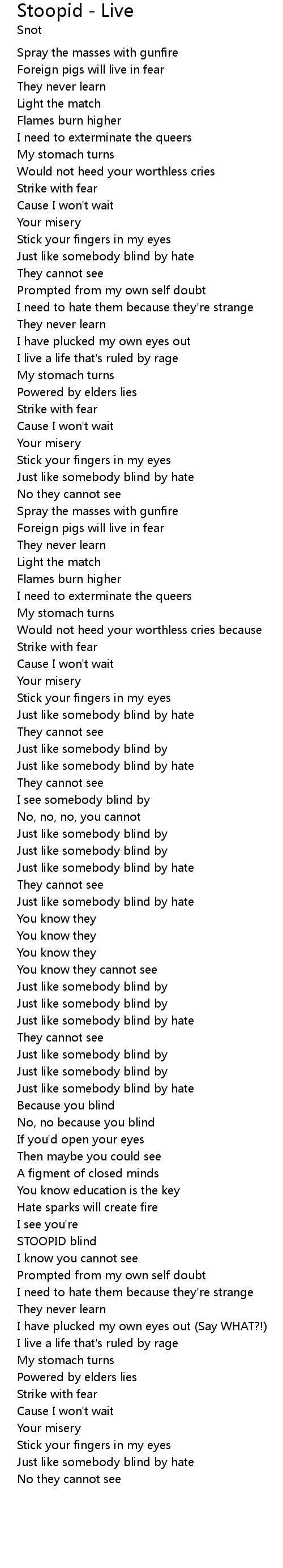 Stoopid - Live Lyrics