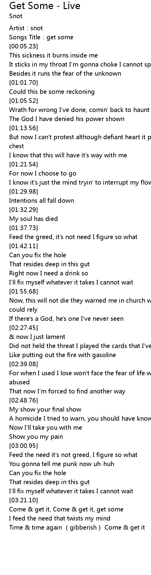 | [03:04.14] | Feed the need it's not greed, I figure so what |