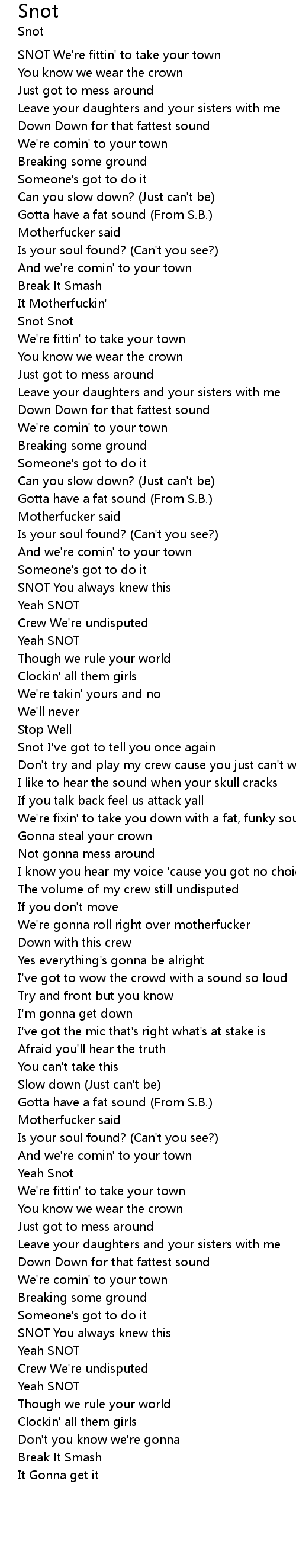 Snot Lyrics