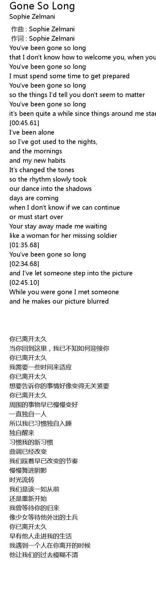 | [00:01.00] | 作词 : Sophie Zelmani |