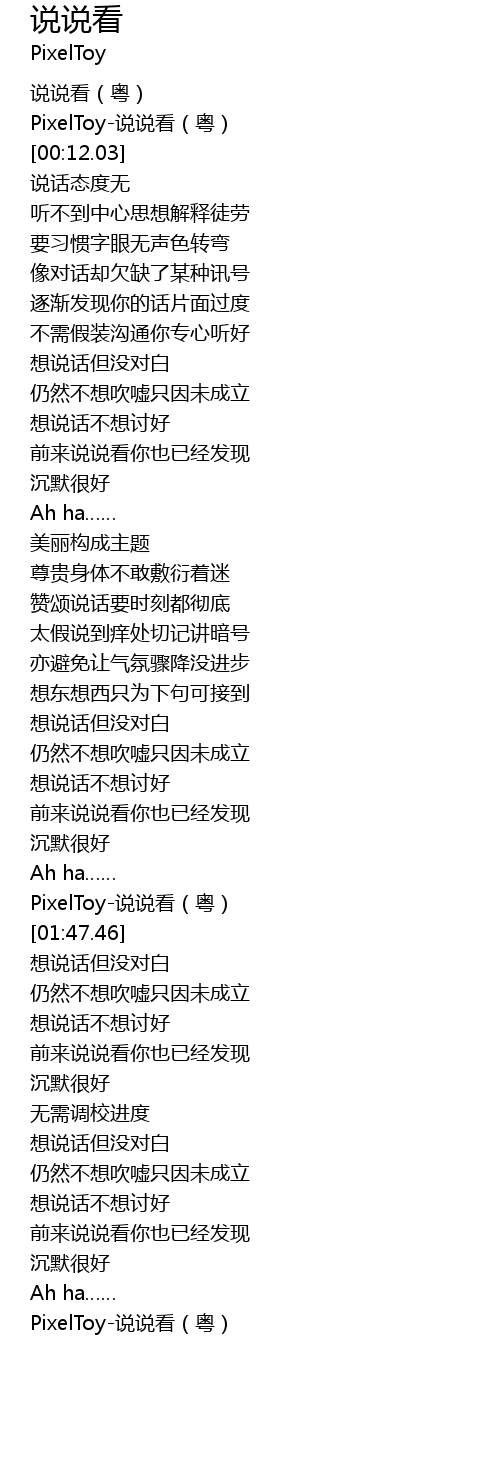| [01:39.63] | PixelToy shuo shuo kan yue |