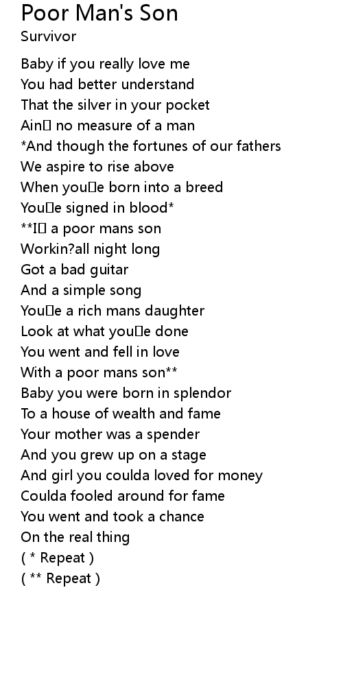 | Song | Poor Man's Son |