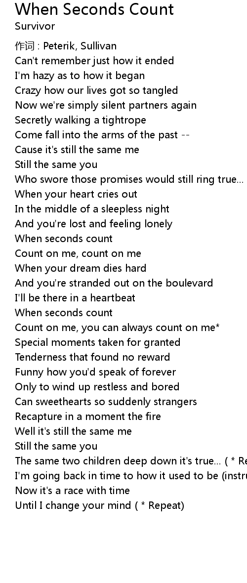 | Song | When Seconds Count |