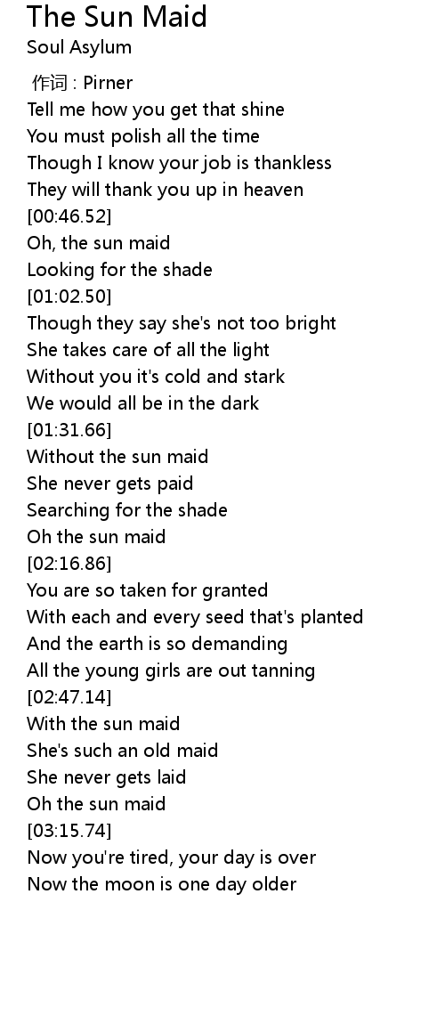 | [01:51.73] | Oh the sun maid |