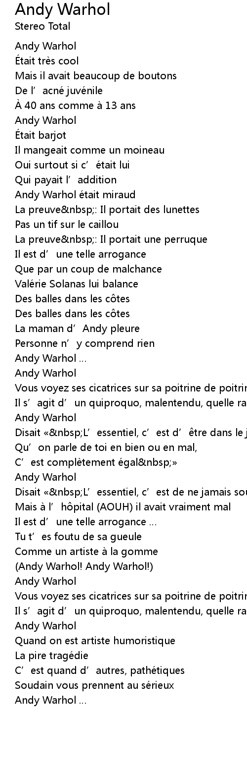 | Song | Andy Warhol |