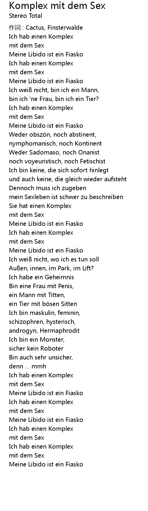 | Song | Komplex mit dem Sex |