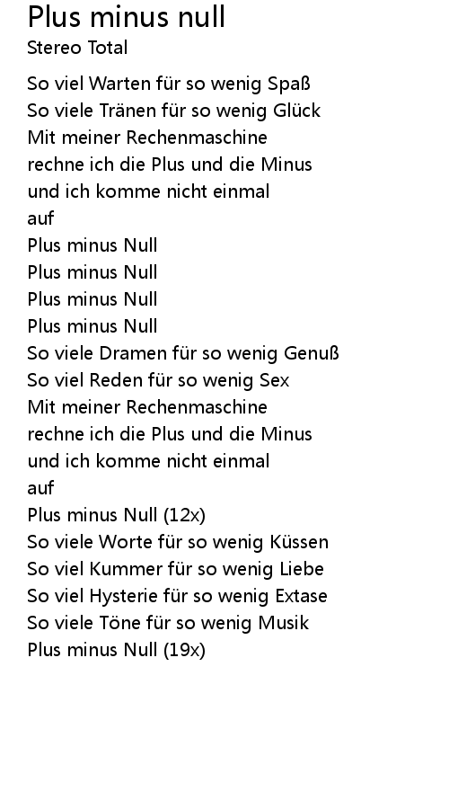 | Song | Plus minus null |