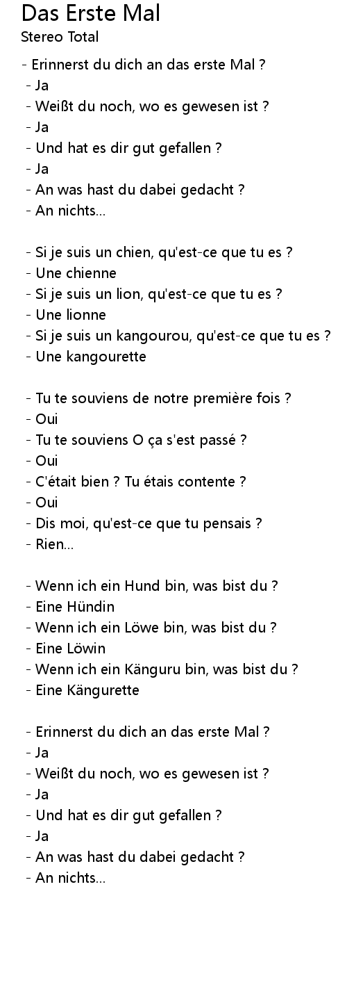 | Song | Das Erste Mal |