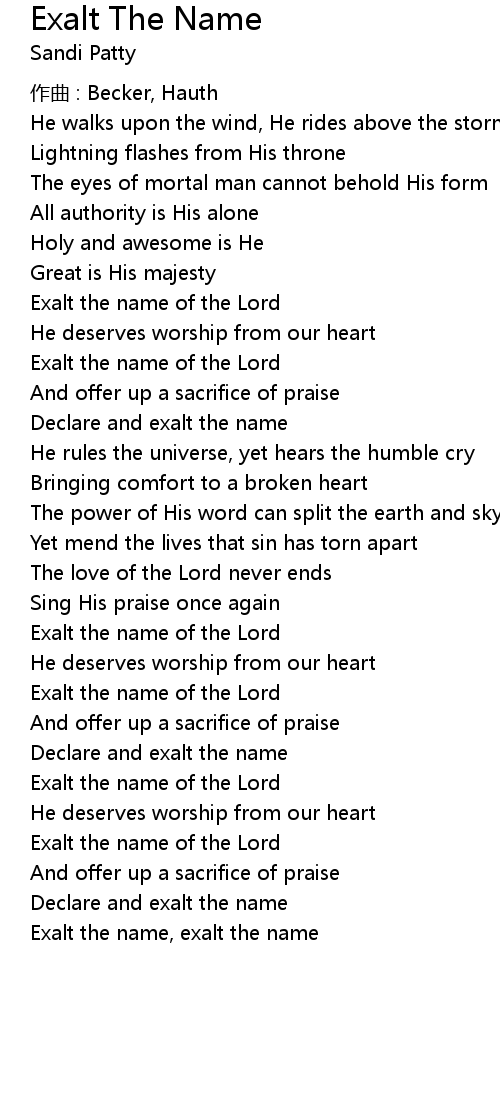 | Exalt the name of the Lord | |