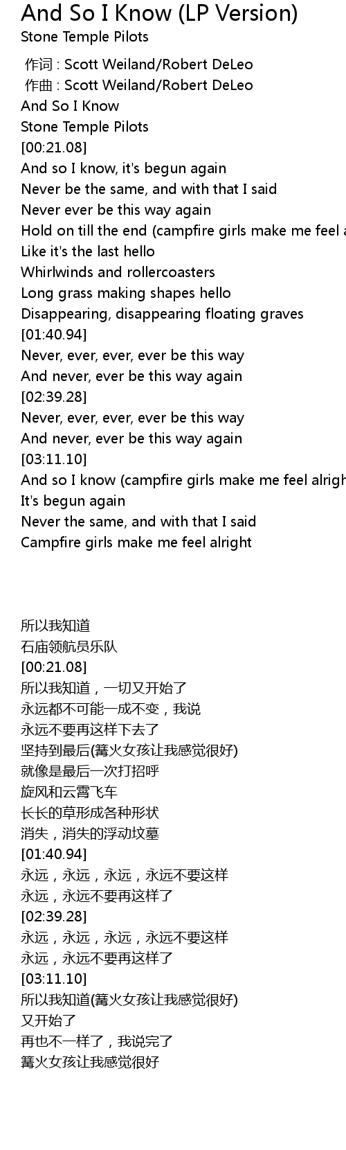 | [00:00.022] | zuo qu : Scott Weiland Robert DeLeo |