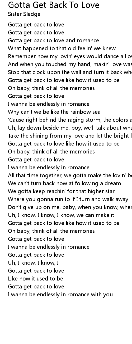Gotta get back to love |