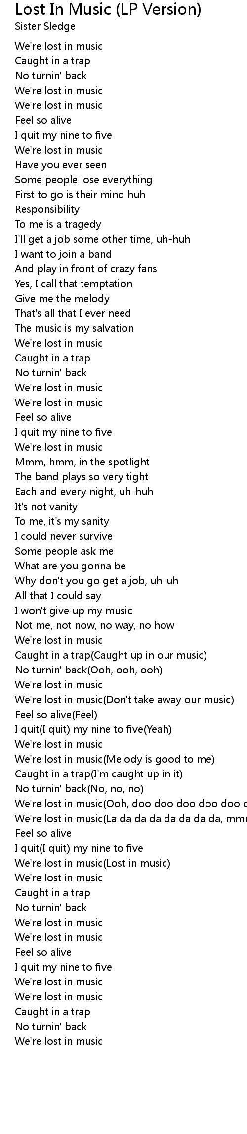 We're lost in music(Ooh, doo doo doo doo doo doo) |