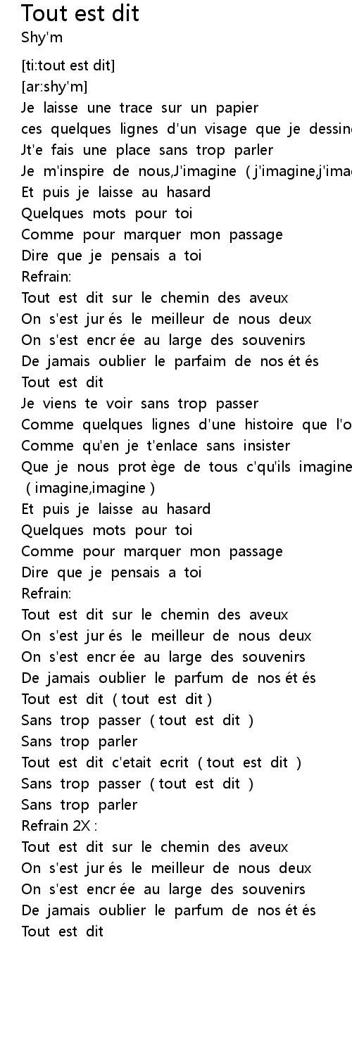 | [00:54.95] | Tout est dit sur le chemin des aveux |