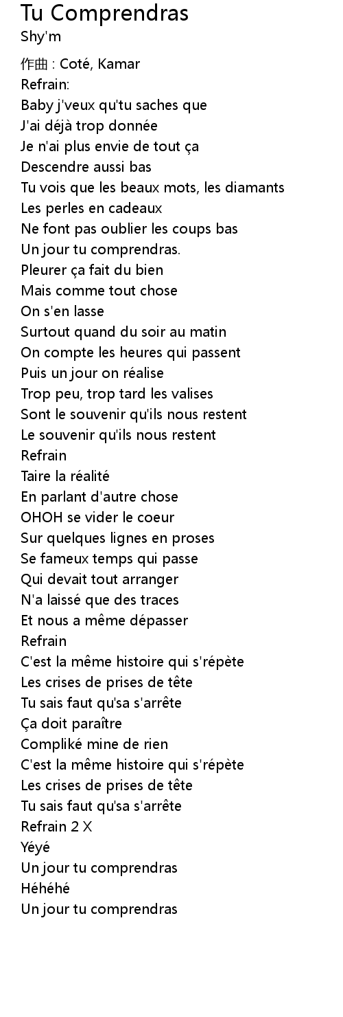 | Song | Tu Comprendras |