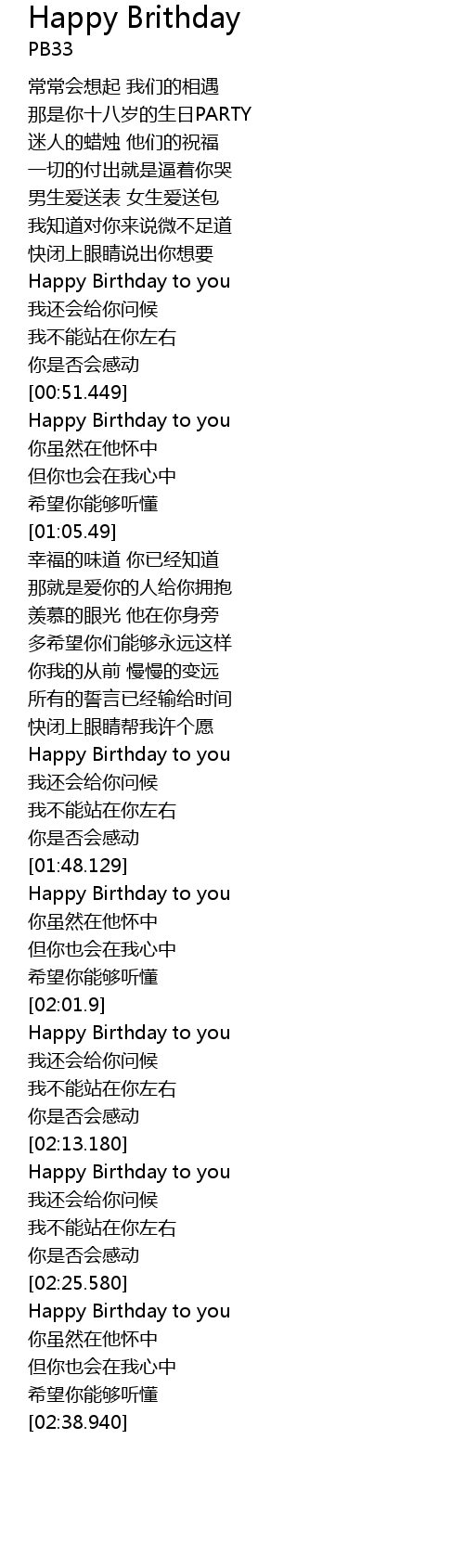 | [00:19.650] | nà shi nǐ shí bā suì de shēng rì PARTY |