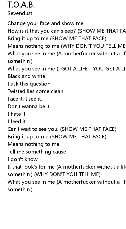| How is it that you can sleep? (SHOW ME THAT FACE) | |
