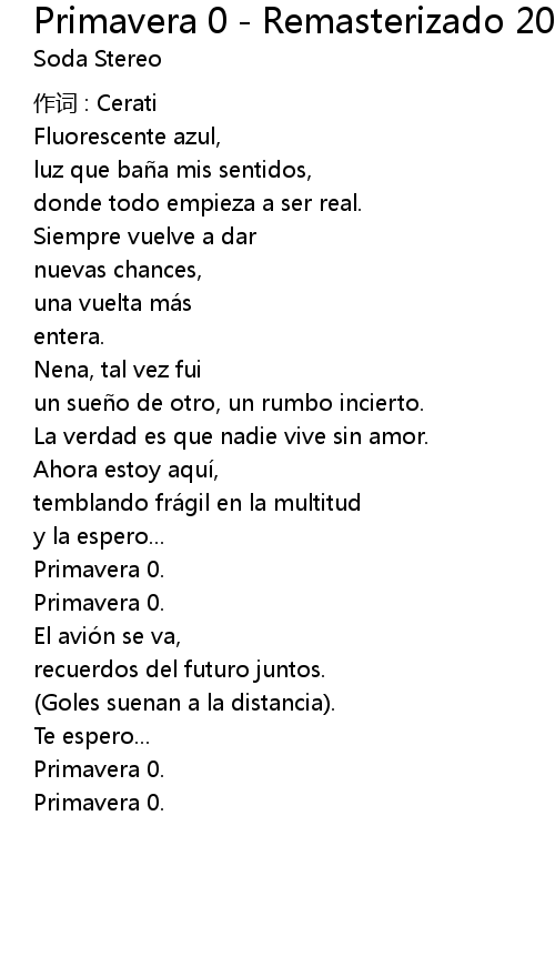 | Song | Primavera 0 - Remasterizado 2007 |