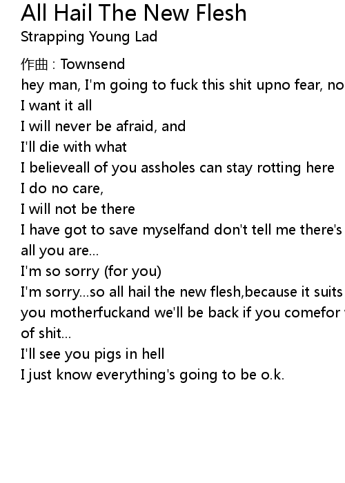 | I' m sorry... so all hail the new flesh, because it suits me fine... just get away, you motherfuckand we' ll be back if you comefor what this means to me, you piece of shit... | |