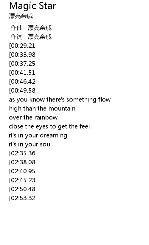| [01:43.39][00:29.21] | did you see a magic star |