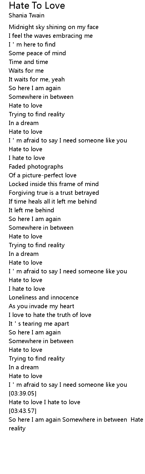 | [03:30.56] | Hate to love |