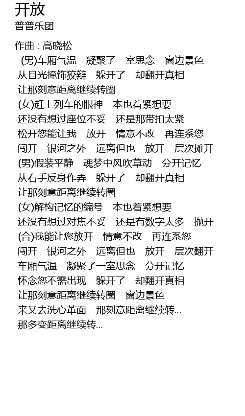 | 松开您能让我 放开 情意不改 再连系您 | |
