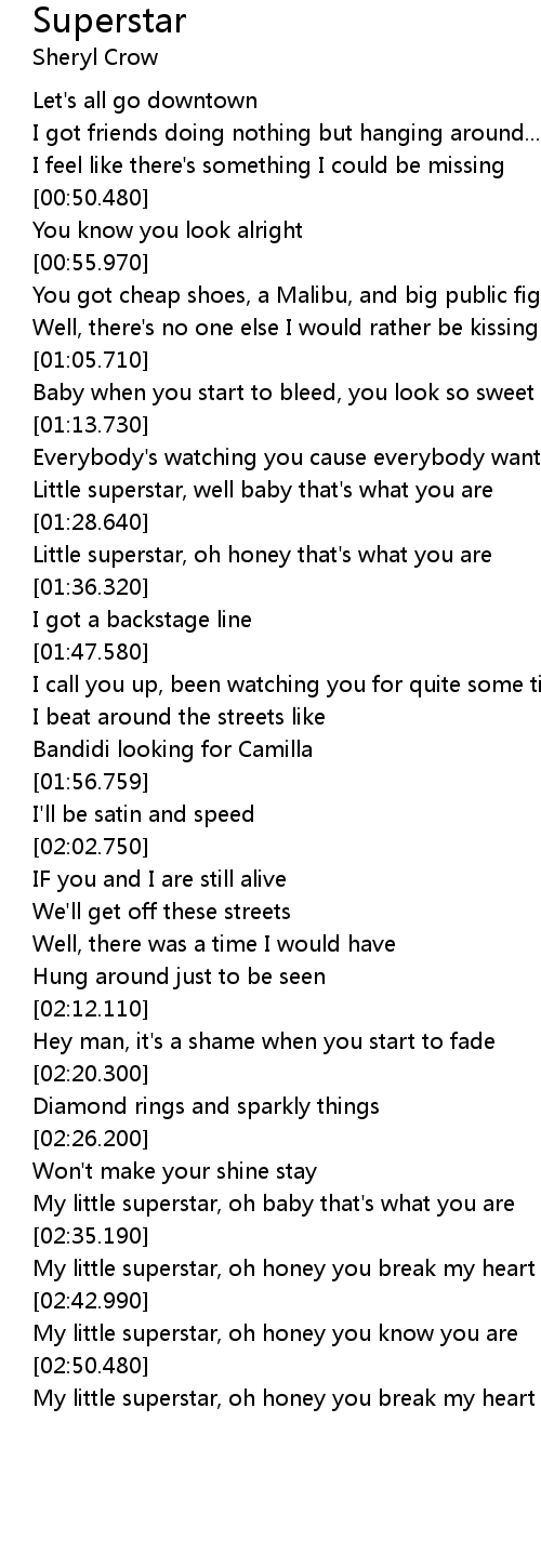 | [02:43.930] | My little superstar, oh honey you know you are |